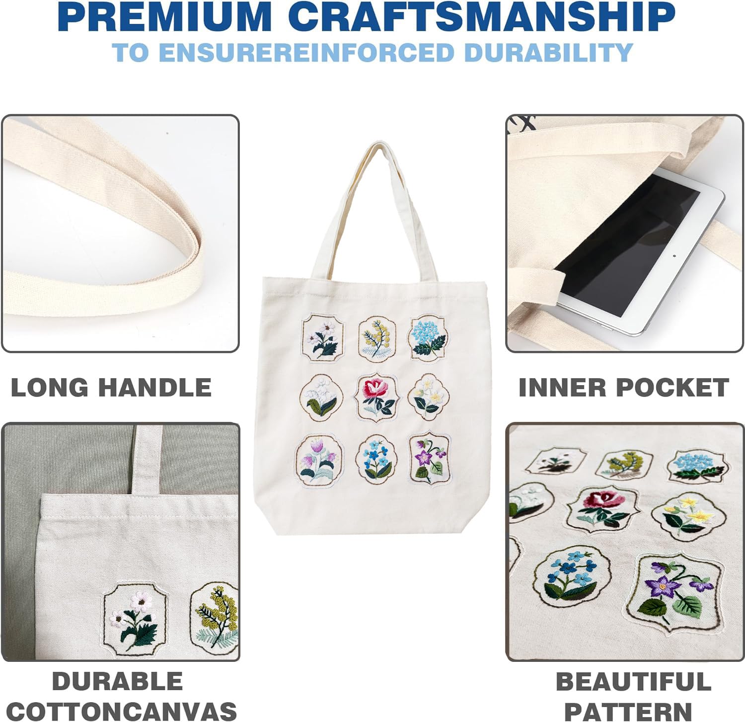 - Beginner Embroidery Kit: Our carefully crafted adult embroidery bag uses high-quality embroidery cotton cloth, natural bamboo embroidery hoops, and a large amount of colorful high-quality embroidery threads. This is not only a fun embroidery kit, after completing this artwork, it can become a beautiful bag for daily use, you can use it as a daily grocery bag, shopping bag, travel bag, etc.
