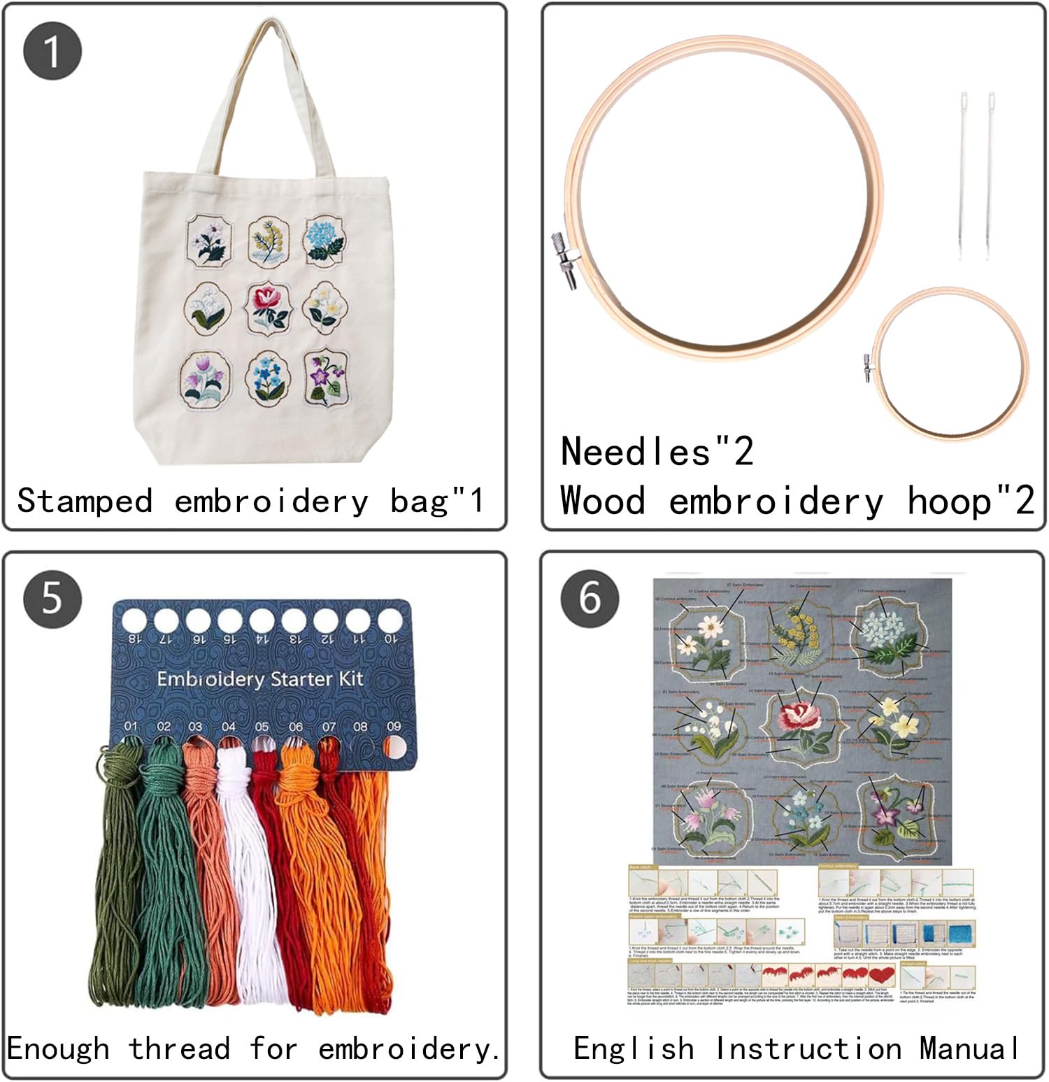 - Precious Handmade Embroidery Kit: This embroidery kit includes 1 printed embroidery bag, 2 embroidery hoops, colorful embroidery threads, embroidery needles, English instruction manual. You can complete beautiful embroidery with this embroidery starter kit.