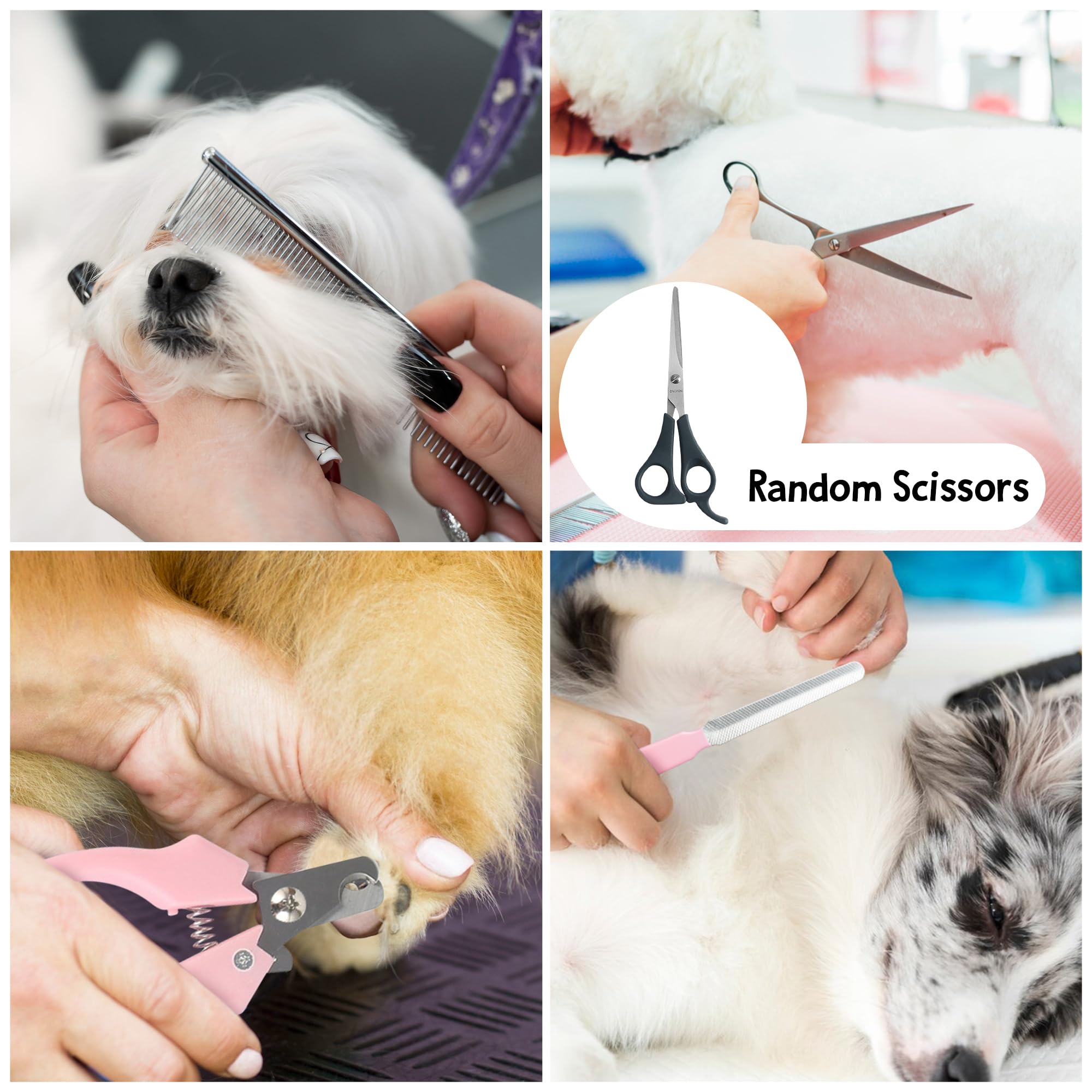 - Multiple Tools Combined: Our dog grooming set comes with exquisite steel flat clippers and a steel comb for easy trimming of long and thick hair, plus a nail set for repairing your pet's nails, with an extra tip for easy trimming the pet's foot area.