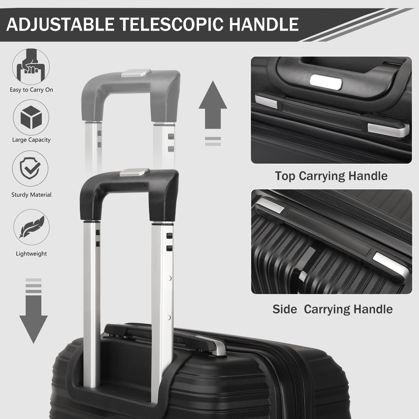 - TSA Lock and Telescoping Handle -The Built-in TSA lock does not have to be forced open and damaged during inspection. It ensures the safety of your valuables and facilitates your passage through security. The 3-section telescopic handle allows you to easily hold the suitcase set without getting tired even on long walks