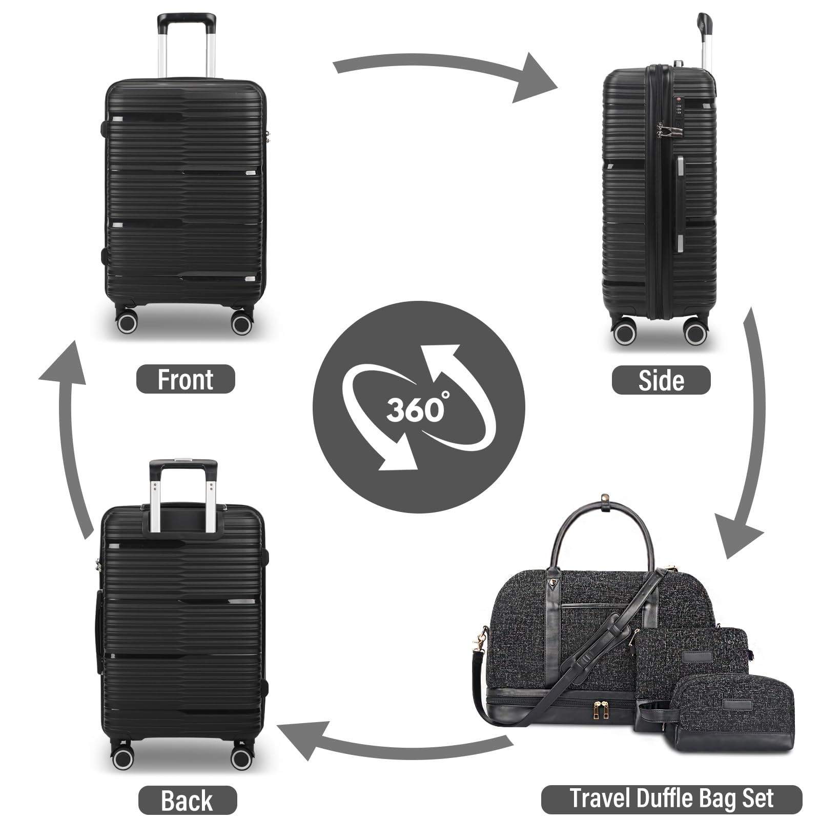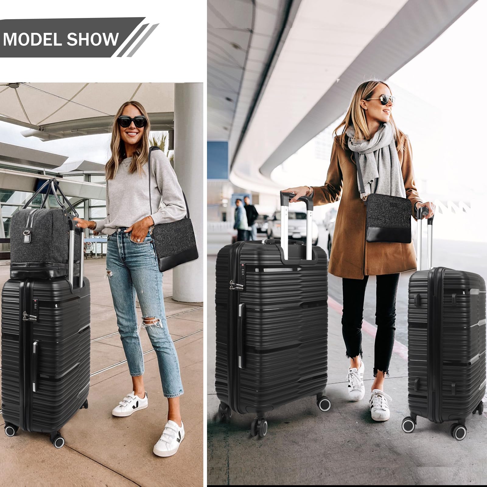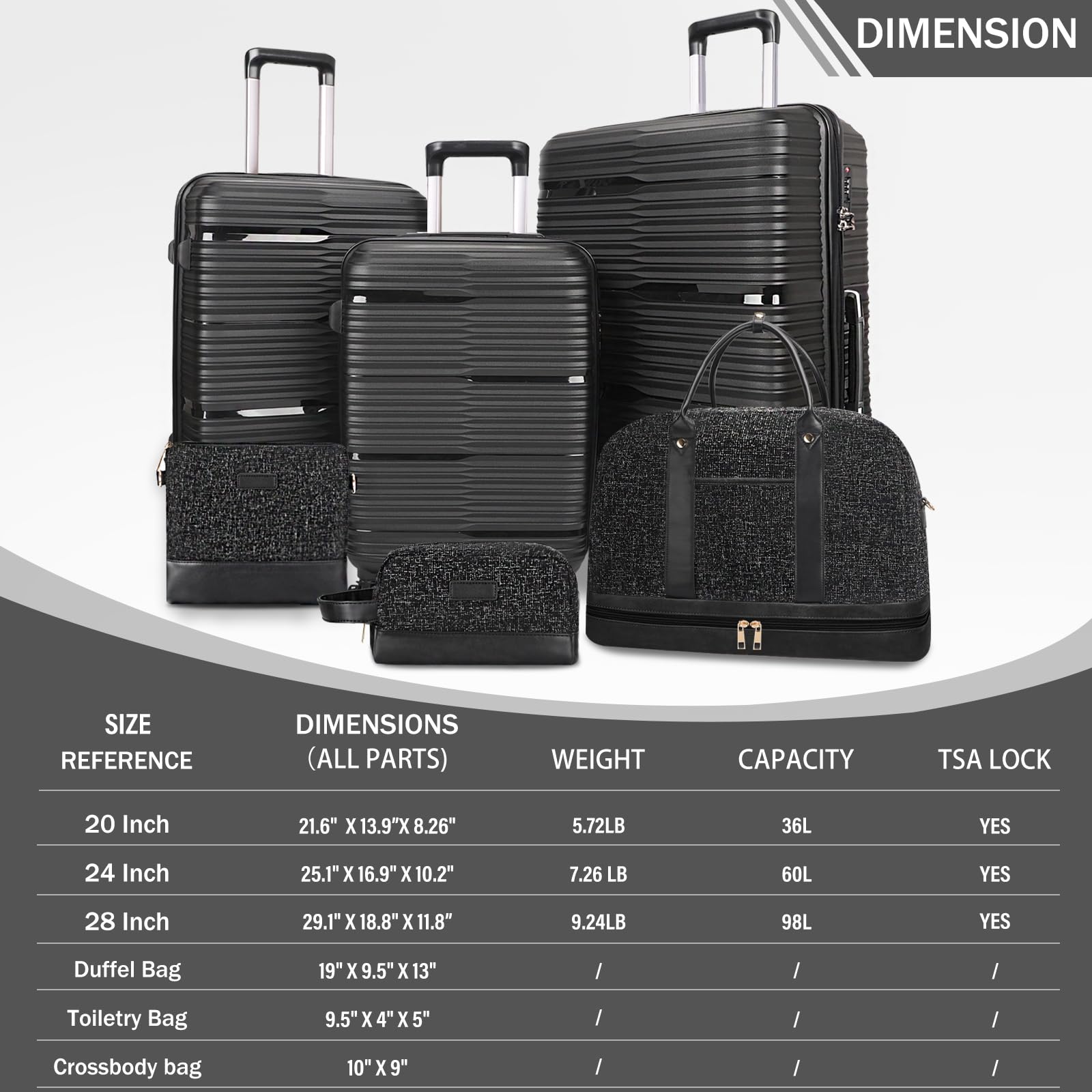 - Luggage Set with Weekender Bag for Travel - Luggage sets includes 28" large checked luggage, 24" medium checked luggage, 20" carry-on luggage, weekender bag, crossbody bag and makeup bag. Large capacity and fully equipped to meet your different travel needs