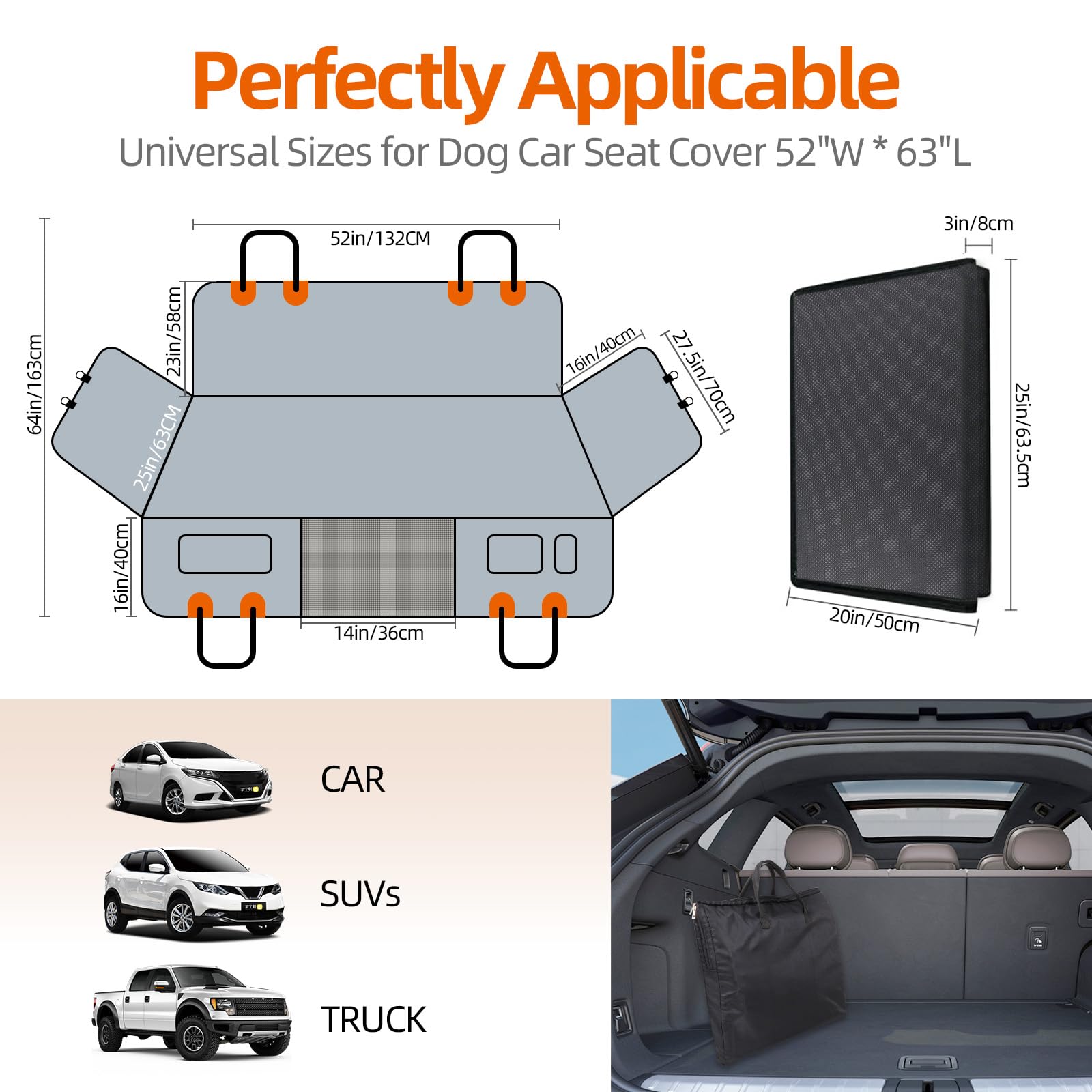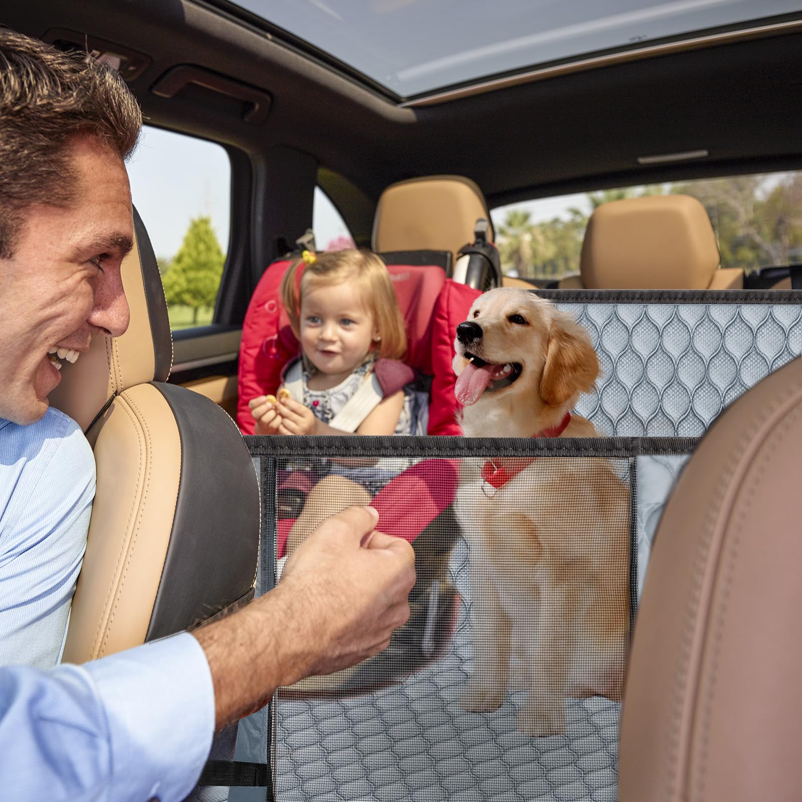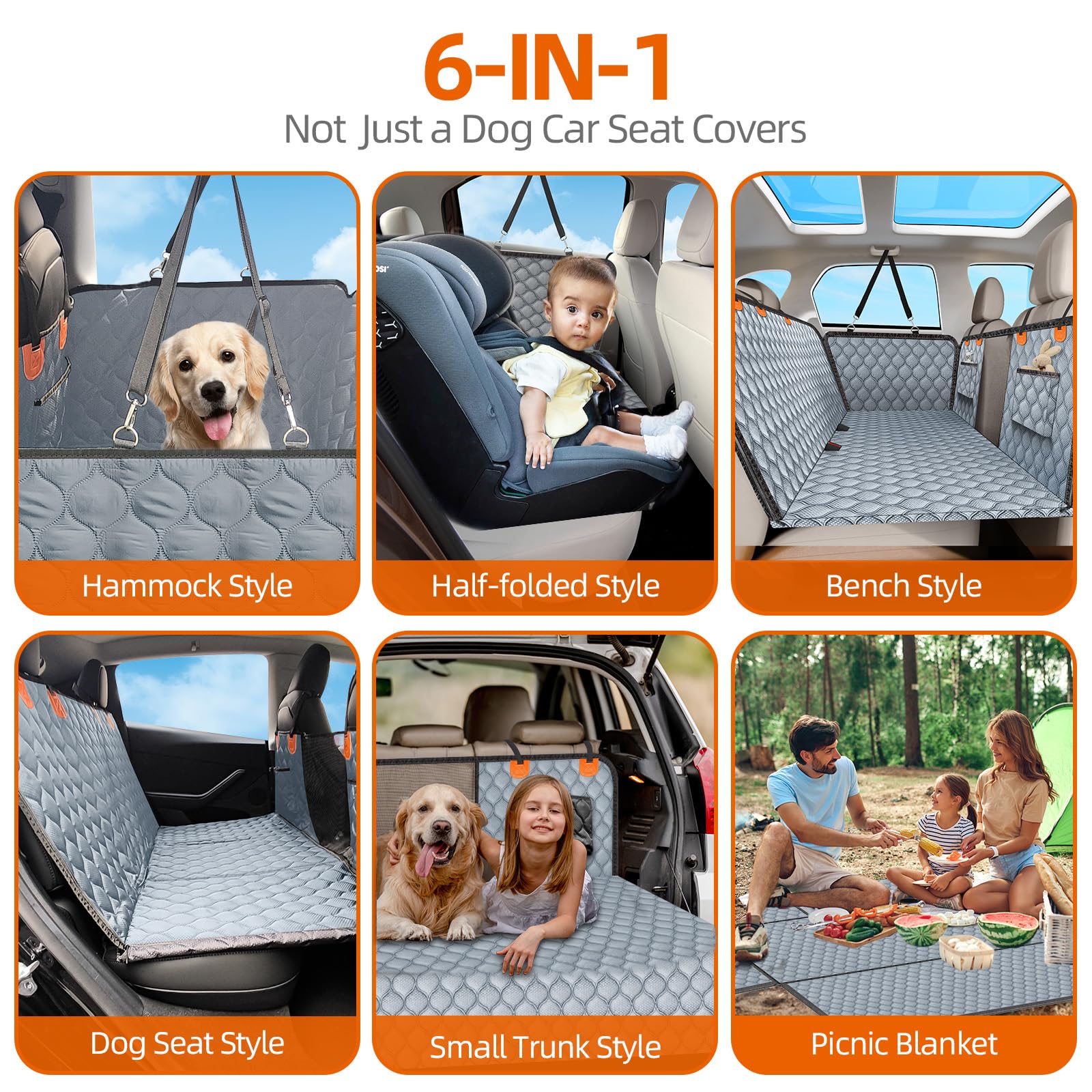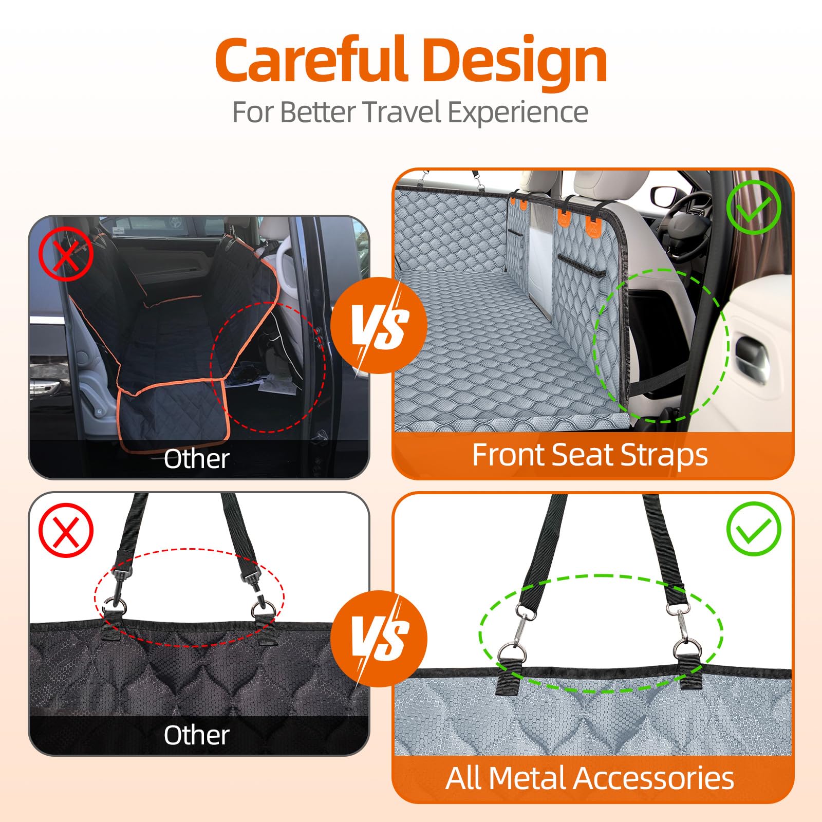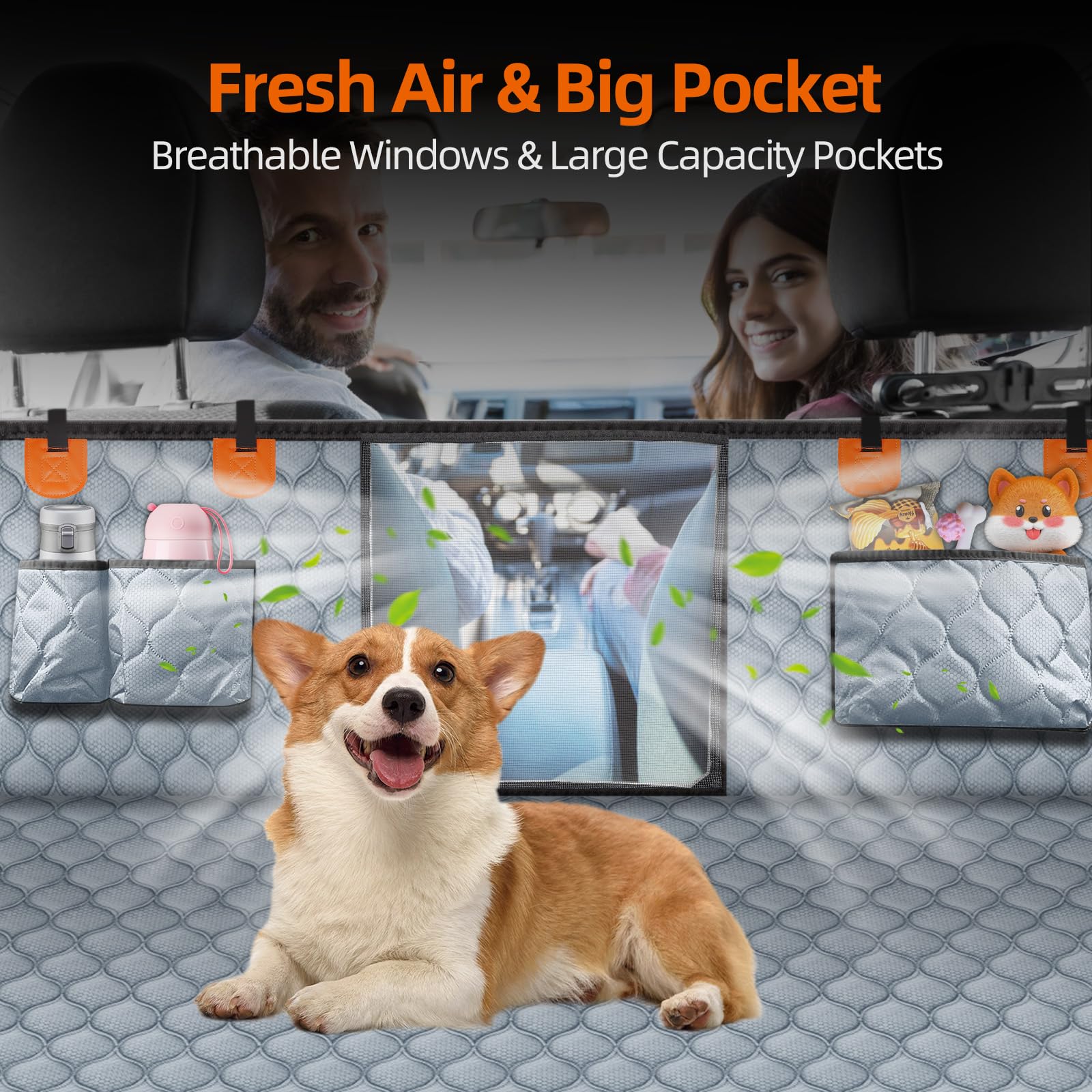 FURROOM Back Seat Extender for Dogs- Holds 400LBS, Dog Car Seat Cover for Backseat Hard Bottom 100% Waterproof Non-Slip Scratch Resistant Dog Hammock for Car SUVs Truck, Universal Size -Silver Gray