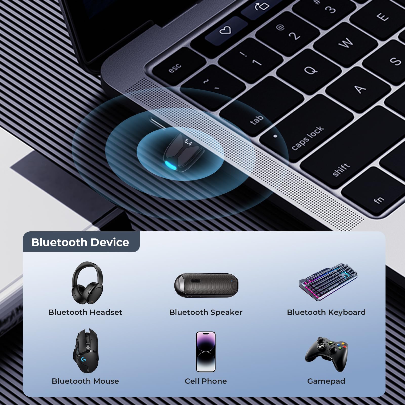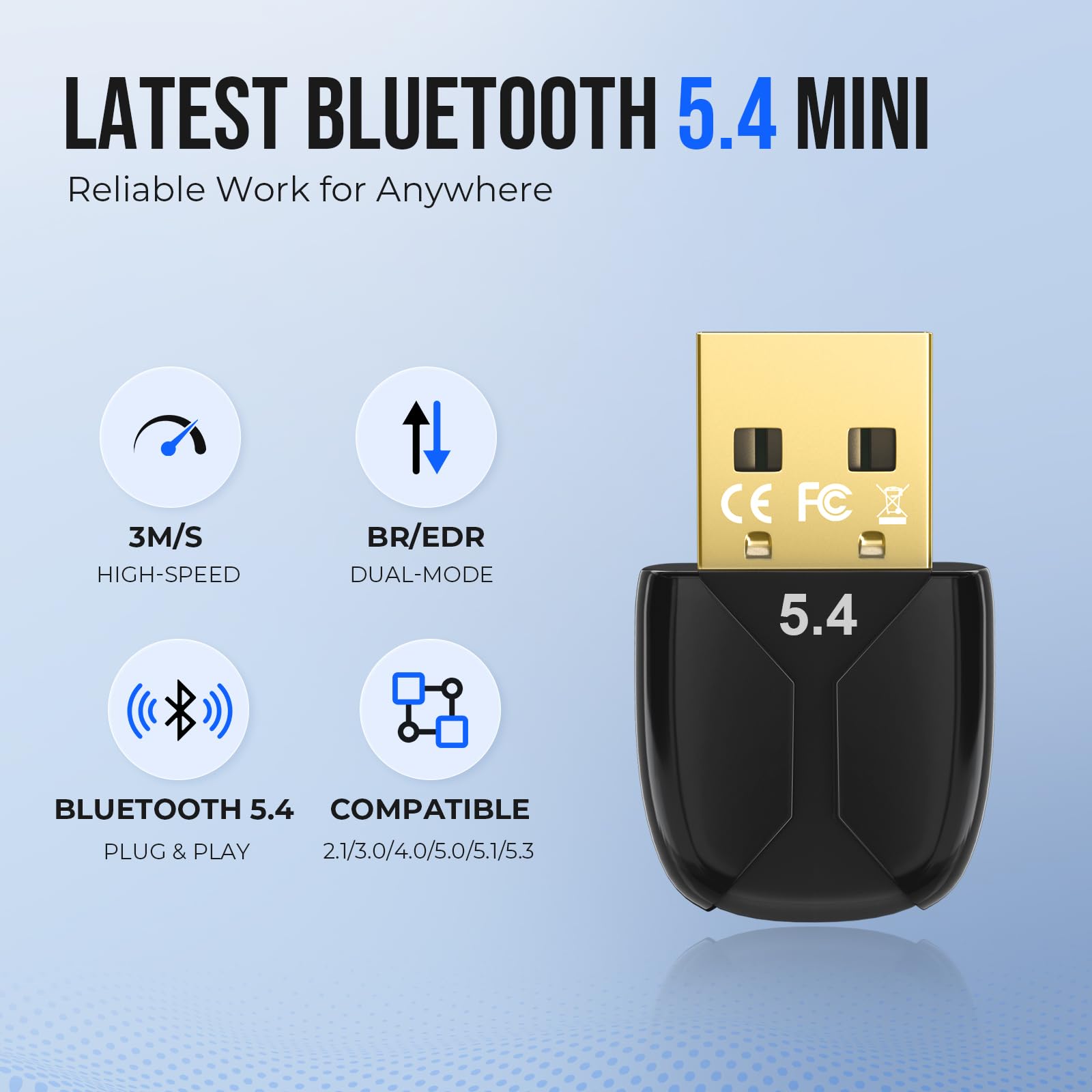 - High-speed bluetooth 5.4: The usb bluetooth adapter supports dual-mode BR/EDR, providing 3M/S running speed, goodbye to lag, more stable and faster speed, while backward compatible with bluetooth 2.1/3.0/4.0/5.0/5.1/5.3