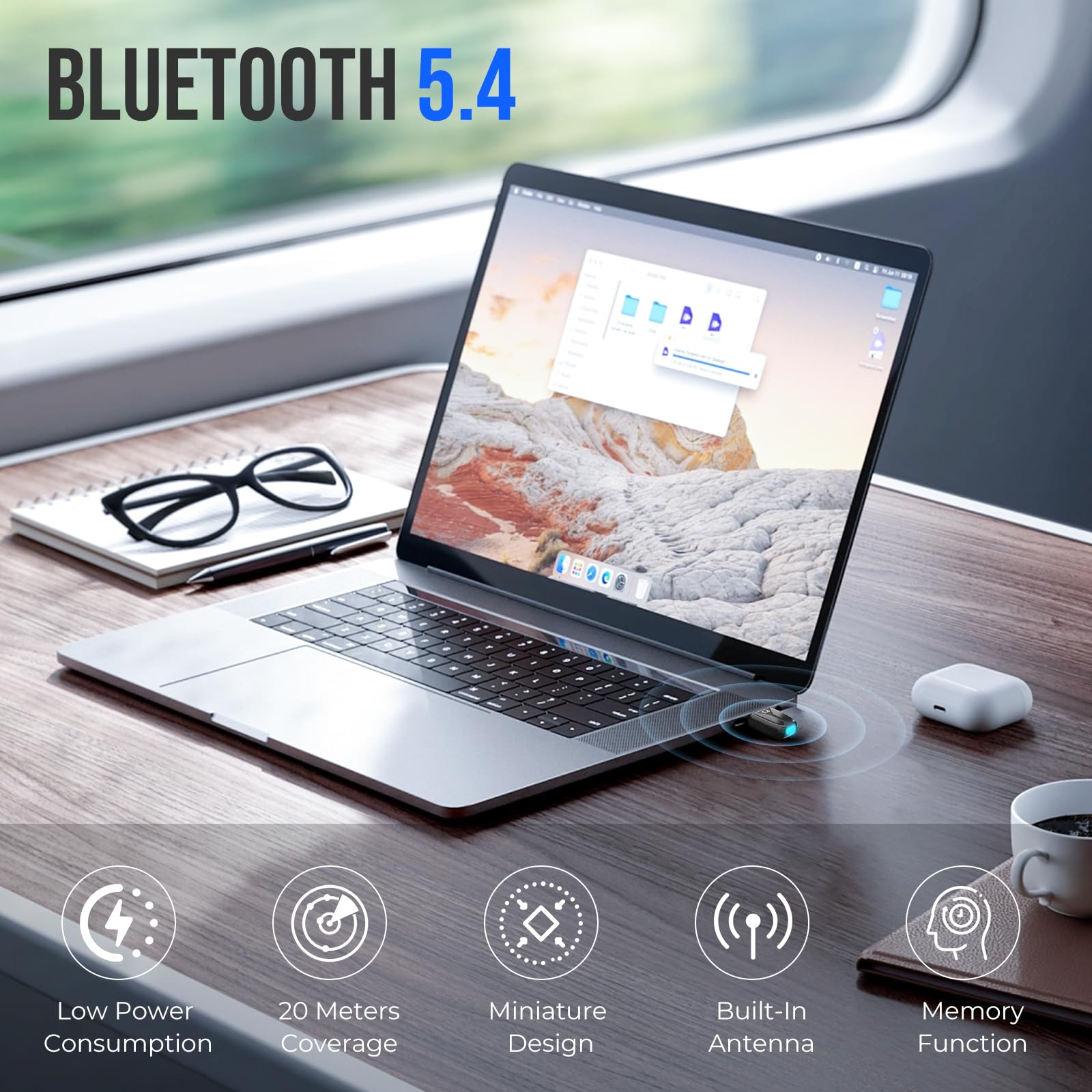 Upgraded USB Bluetooth 5.4 Adapter for PC, Wireless USB Dongle, USB Bluetooth Adapter Bluetooth Dongle for PC,Desktop, Laptop, Mouse, Bluetooth PC Adapter Plug & Play, Windows 11/10/8.1/7