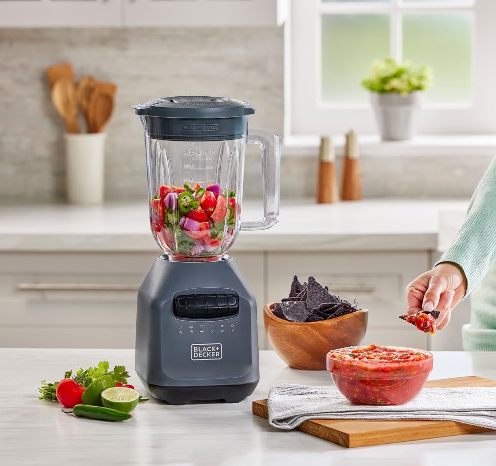 Black & Decker Ice Crush Blender with 56 Ounce (7 Cup) PerfectPour Plastic Jar, Powerful 6-tip Stainless Steel Blade, 8-speeds plus Pulse, 750 Peak Watts of power